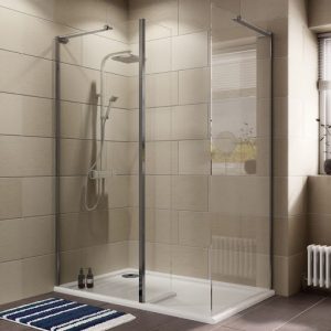 Vách kính phòng tắm vuông góc – 90 độ cánh mở